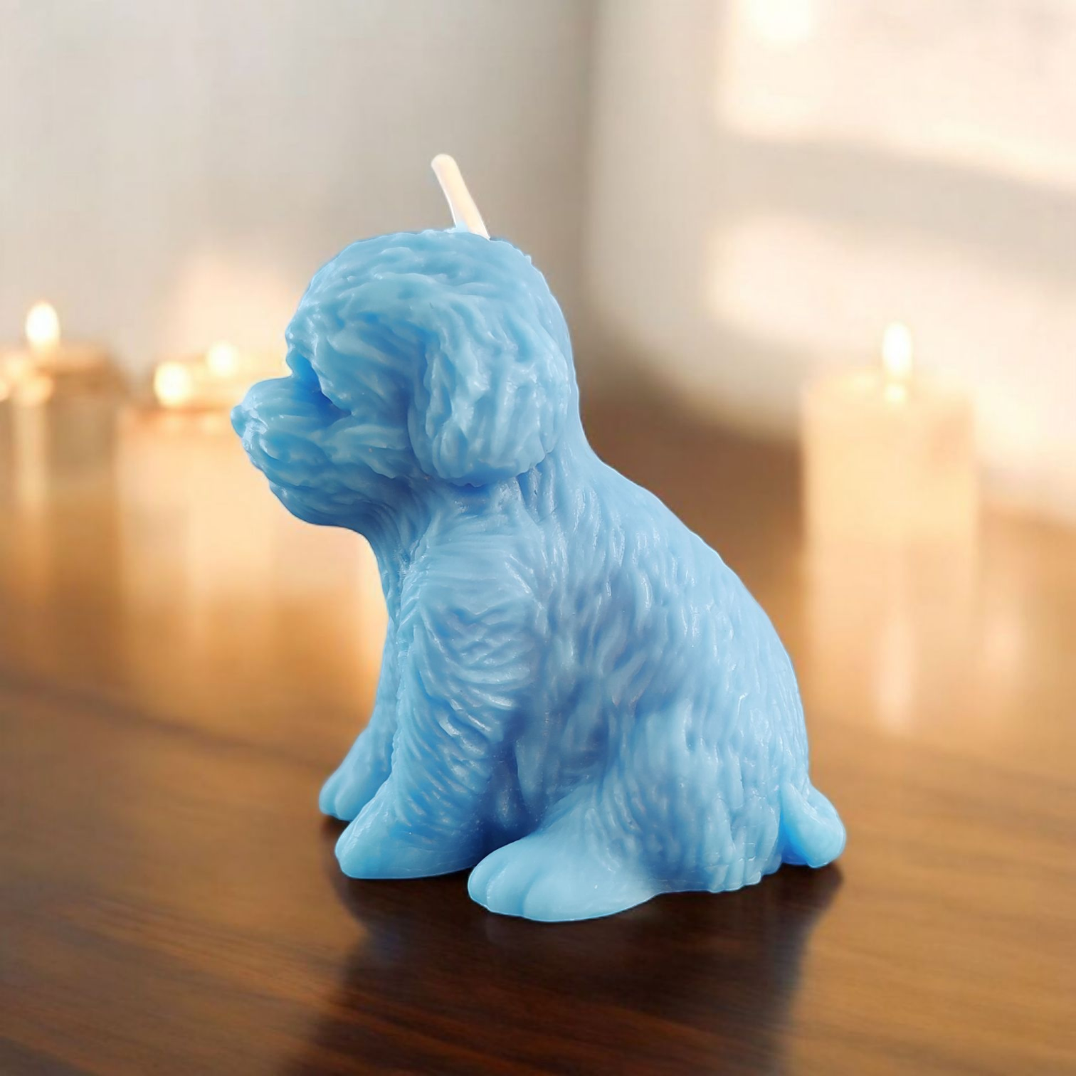 Świeca wizerunkowa niebieski pies: